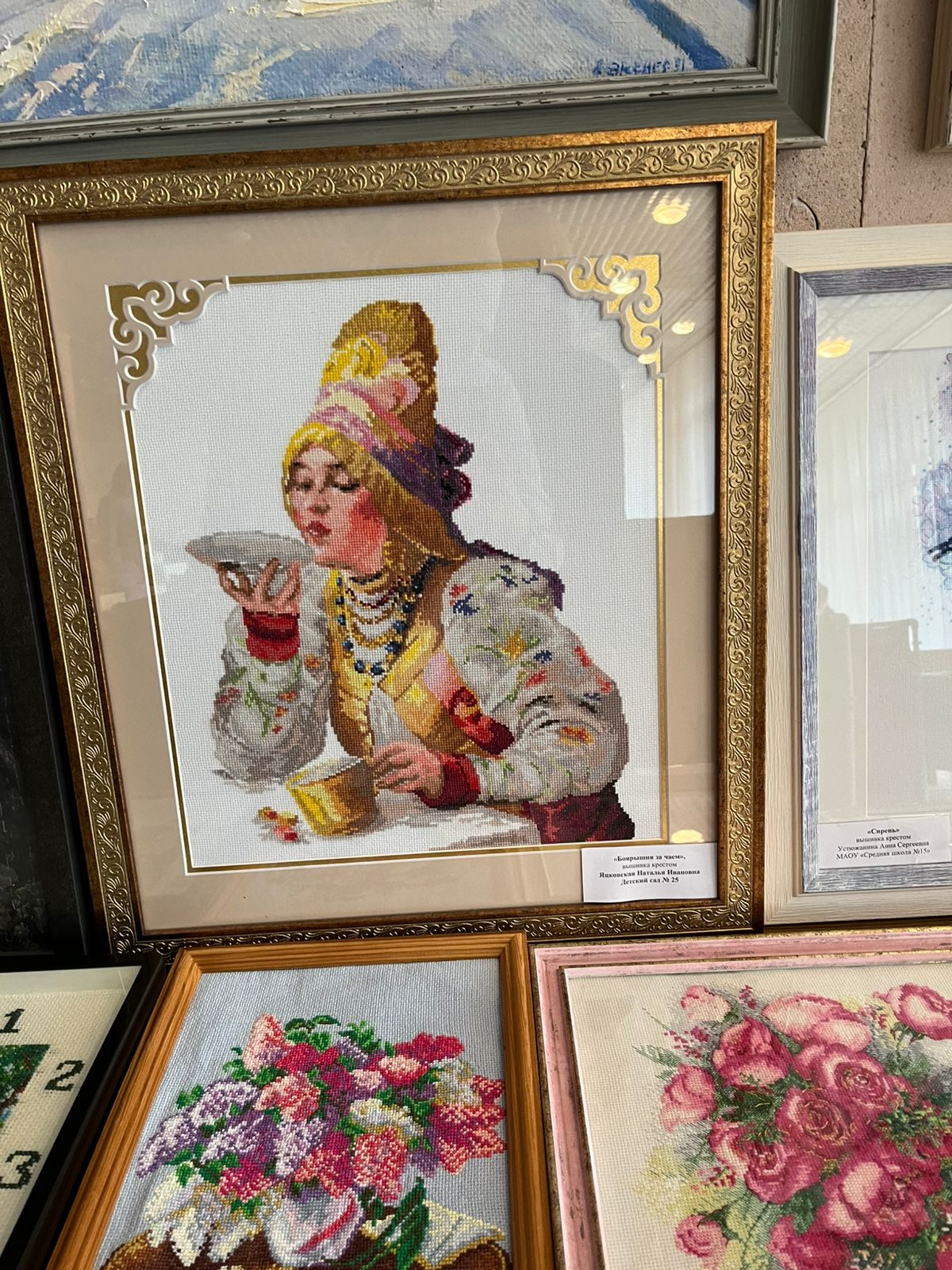 В номинации «Вышивка крестом» III место заняла Наталья Ивановна с работой «Боярышня за чаем», а в номинации «Интерьерная игрушка, мягкая игрушка» I место с работой «Хранитель домашнего очага».