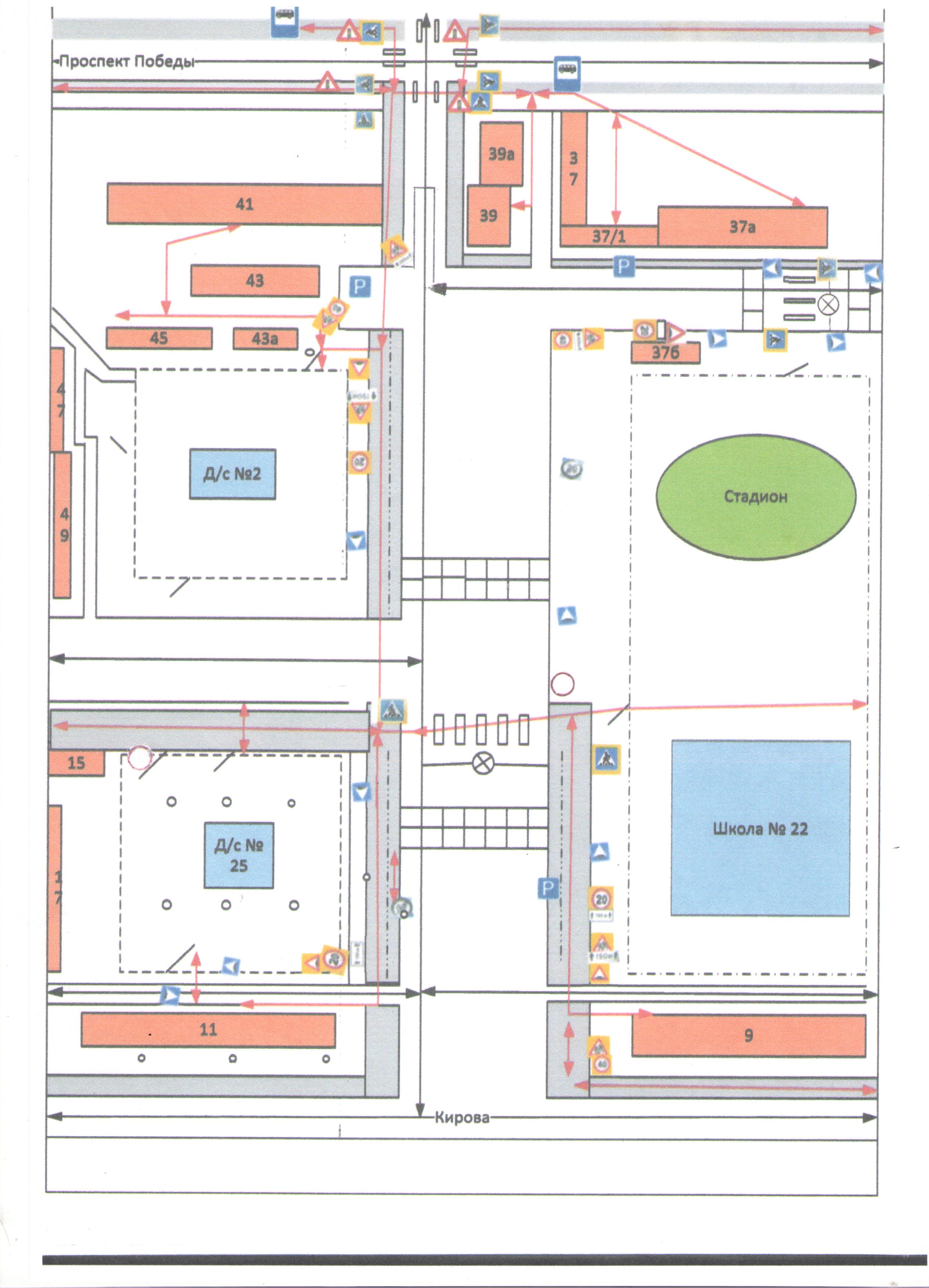 Схемы для организации безопасного дорожного движения в непосредственной близости Детского сада № 25, маршруты движения детей "Дом-детский сад- дом"